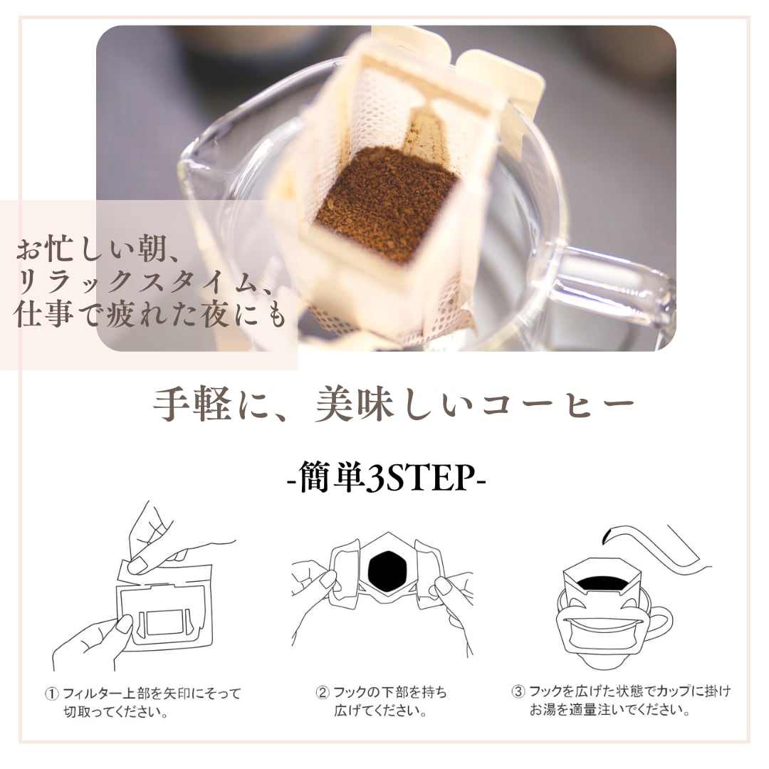 一般的なドリップバッグより多めですのでたっぷりお飲みいただけます。